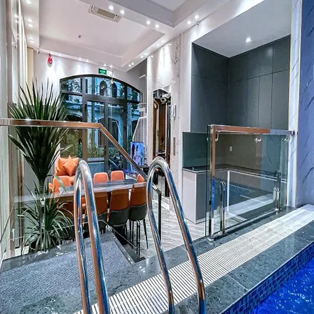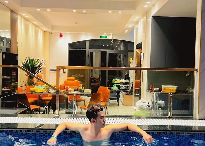10-pokojowy Chuoi Villa 7 Phong Ngu Danh Cho Gia Dinh - Canh Bien -Trung Tam Bai Chay Ha Long o powierzchni 100 m² oferuje kryty basen, które zapewniają jeszcze przyjemniejszy pobyt. Apartament oferuje gościom możliwość odwiedzenia Cai Dam Market w odległości prawie 25 min spacerem.